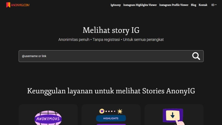 Anon IG Viewer – спеціалізований інструмент для анонімного перегляду сторіс і актуальних публікацій. Набір опцій тут стандартний: