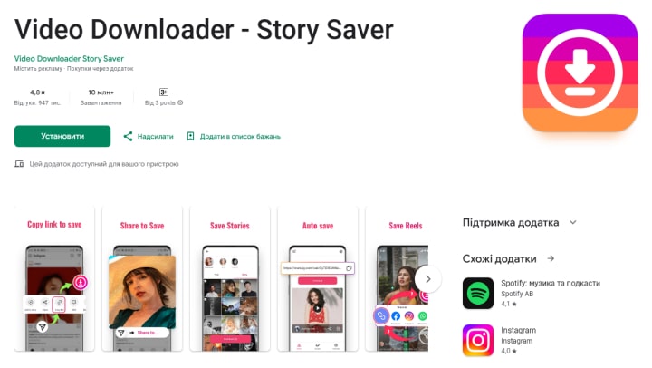 StorySaver+ – ще один мобільний додаток, повністю адаптований лише для Android. Серед його можливостей: