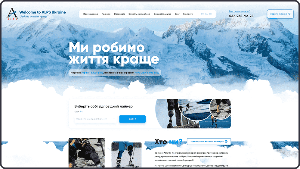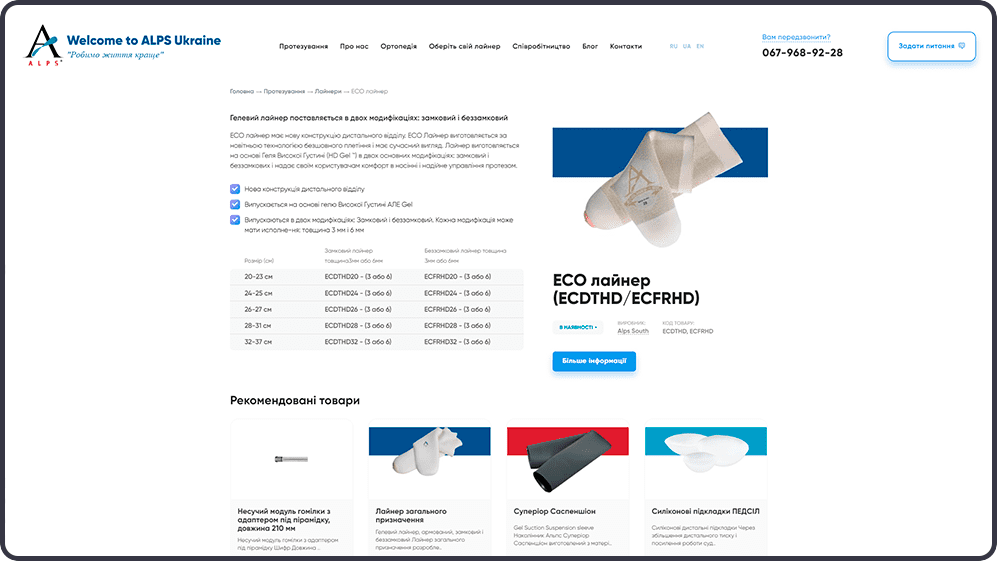 Легкий, лаконічний, не переобтяжений інформацією і додатковими елементами, але гранично функціональний дизайн. Завдяки цьому оформленню істотно покращено юзабіліті сайту, оскільки відвідувач може в кілька кліків знайти необхідну інформацію про товар, розібратися в його характеристиках і вибрати оптимально відповідний варіант. Також в постійному доступі на кожній сторінці є кнопка зворотного зв’язку для отримання консультації від кваліфікованого фахівця.