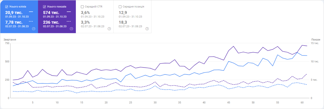 Перші результати було зафіксовано вже на початковому етапі. Тільки кількість кліків збільшилася більш ніж на 60%.