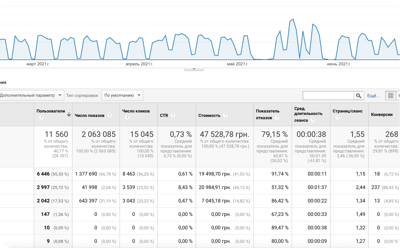 Результати роботи реклами з 1 лютого 2021 року по 30 червня 2021 року
